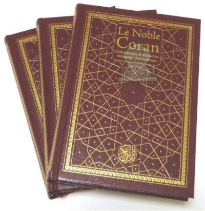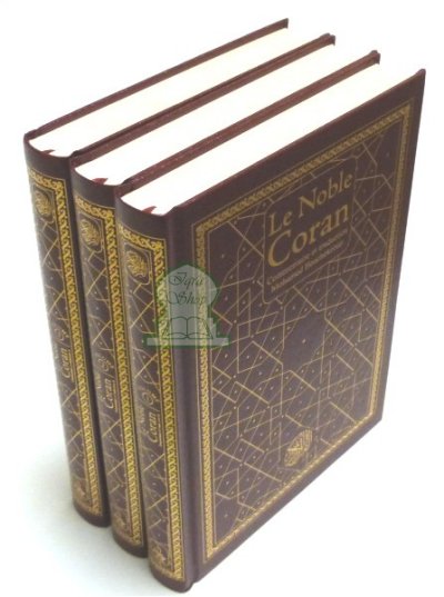 Le Noble Coran, bilingue arabe - français, en trois parties, avec une magnifique couverture marron, commenté et traduit par Mohamed BENCHEKROUN.
