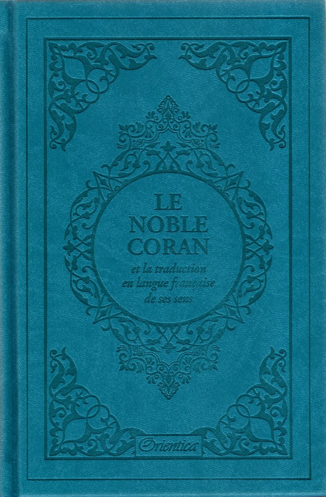 Le Noble Coran avec couverture cartonnée de type cuir, doux au toucher. Très jolie couleur bleu. Idéal pour offrir.