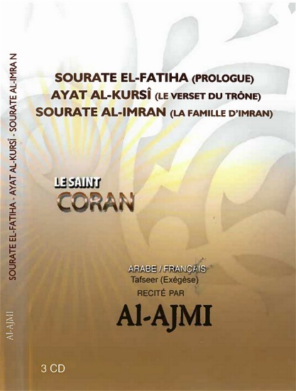 Le Saint Coran (3 CD) - Sourate El Fatiha, Ayat Al-Kursi et Sourate Al-Imran (Arabe-Français) - REF. 27394 (18.00 €)
