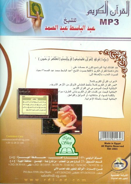 Le Saint Coran complet par Cheikh 'Abd El-Bassit 'Abd-El-Samad - المصحف المرتل بصوت الشيخ عبد الباسط عبد الصمد - REF. 4383 (6.00 €)