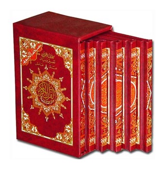 Ces six parties du Coran avec tajwid sont en format portrait standard, chaque partie étant magnifiquement et solidement reliée et numérotée (de 1 à 6) en couverture. Chaque page contient 15 lignes comme tout Coran standard, avec en marge une interprétation des mots sélectionnés.