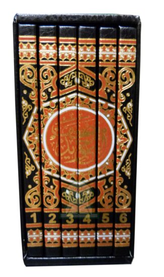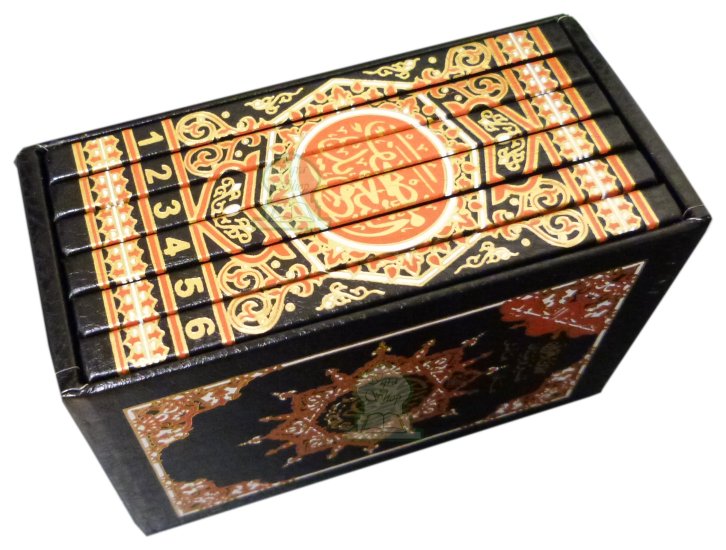 Dans ce produit, le Coran complet avec tajwid est divisé en six parties séparées, réunies dans un magnifique et solide étui.