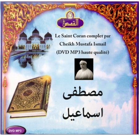 DVD contenant la récitation avec haute qualité audio du cheikh Mustapha Ismail, grand récitateur égyptien. Le DVD contient 114 sourates : 114 fichiers MP3. Total 1,4 Go.