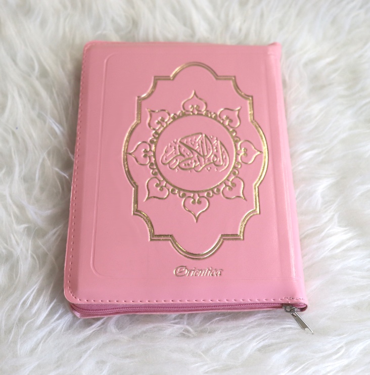 Le Saint Coran en langue arabe avec fermeture Zip - Format 14x20cm - Couleur Rose clair