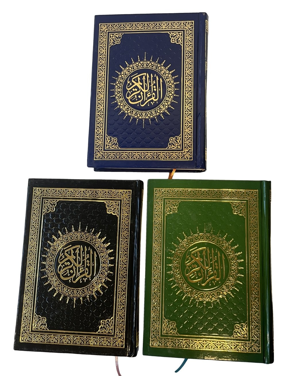 Le Noble Coran (Al-Qurân Al-Karîm) en langue arabe lecture Hafs (Plusieurs couleurs de couvertures disponibles). Couverture cartonnée brillante avec dorures et motifs discrets. Format 17x24 cm.