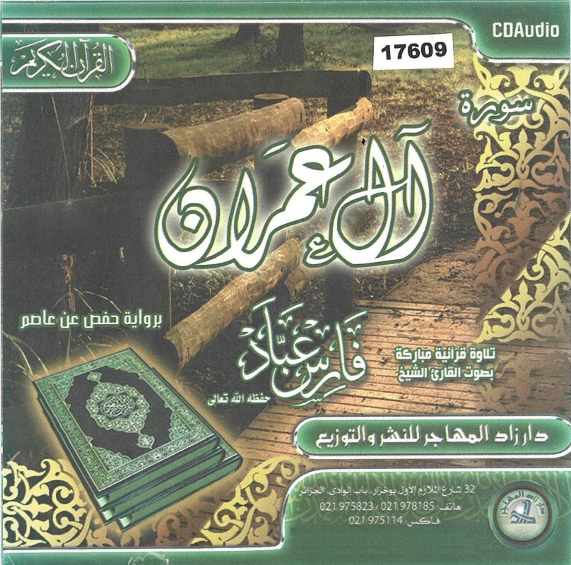 Le Saint Coran hafs sourate Al-'Imrân récité par Cheikh Fares Abbad - القراءة الذهبية لسورة آل عمران - REF. 17609 (6.00 €)