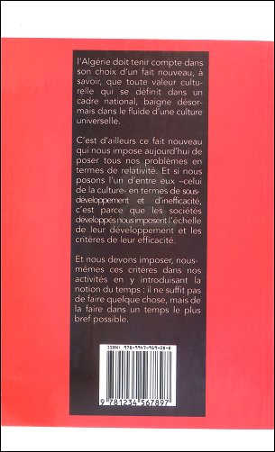 L'Algérie doit tenir compte dans son choix d'un fait nouveau, à savoir, que toute valeur culturelle qui se définit dan un cadre national, baigne désormais dan un fluide d'une culture universelle.