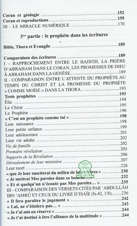 Le Coran affirme que le Prophète de l'Islam est mentionné dans la Thora et l'Evangile, que Jésus a annoncé sa venue. Dans son discours d'adieux aux apôtres, ce dernier déclarait :« J'ai encore bien des choses à vous dire, mais vous ne pouvez les comprendre maintenant. Lorsque viendra l'Esprit de Vérité, il vous fera accéder à la vérité tout entière... » Jean 16, 12/13)
