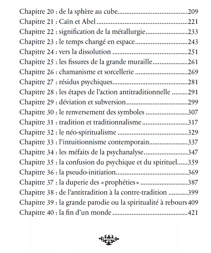 Les principales superstitions du monde moderne y sont décryptées et battues en brèche (matérialisme, rationalisme, psychanalyse, « démocratisme », scientisme, spiritisme et New Age, charlatanisme et pseudo-prophéties, etc.). Si les modernistes et les « rigoristes » de tous bords lisaient et méditaient profondément les considérations exposées dans cet ouvrage, ils ne seraient pas tombés dans les illusions et superstitions tenaces de notre temps. Tout y est exposé avec une rigueur "mathématique" limpide.