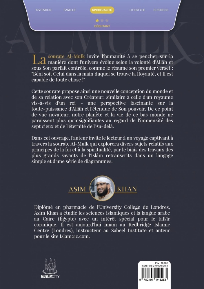 De ce point de vue novateur, notre planète et la vie de ce bas-monde ne paraissent plus qu'insignifiantes au regard de l'immensité des sept cieux et de l'éternité de l'Au-delà. Dans cet ouvrage, l'auteur invite le lecteur à un voyage captivant à travers la sourate Al-Mulk qui explorera divers sujets relatifs aux principes de la foi et à la spiritualité, par le biais des travaux des plus grands savants de l'Islâm retranscrits dans un langage simple et d'une série de diagrammes.