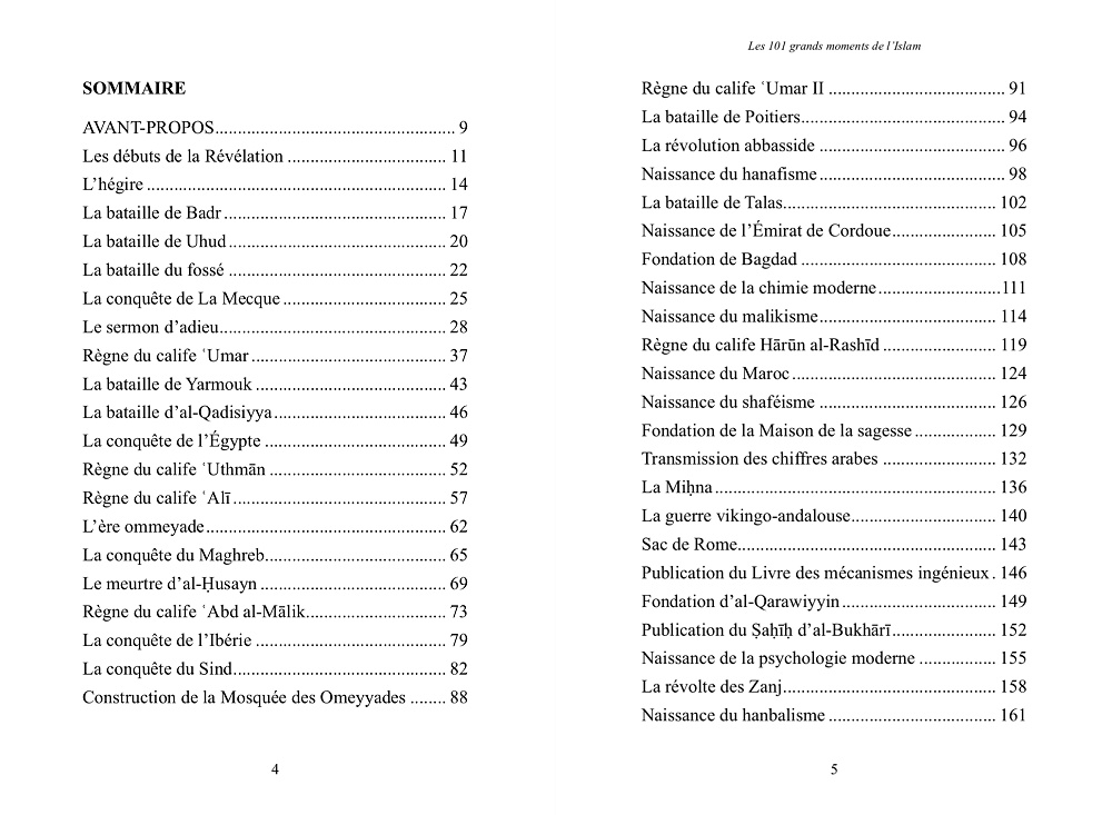 Découvrez au travers de ses pages quelques-uns des grands moments et événements ayant fait l’histoire de la civilisation islamique, ceci de l’ère de la Révélation coranique à nos jours. De la bataille de Badr à l’abolition du Califat, du voyage d’Ibn Baṭṭūṭa à la chute de Grenade en passant par la naissance du malikisme ou la conquête de Constantinople par les Ottomans, plongez-vous dans 14 siècles d’un monde à la jonction des époques et des continents.