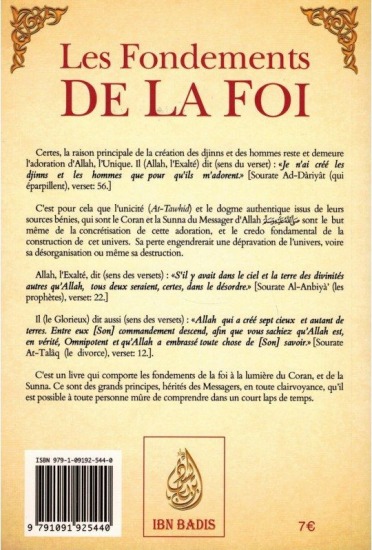 Ce livre rappelle les fondements de la foi à la lumière du Coran, et de la tradition prophétique. Ce sont les grands principes hérités des Messagers,que l'on peut appréhender rapidement.