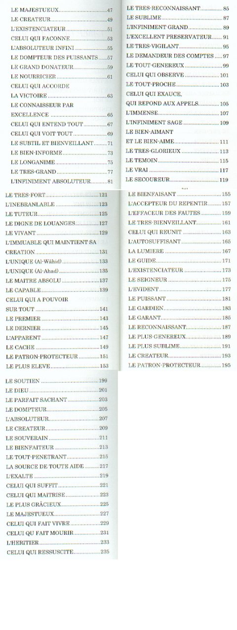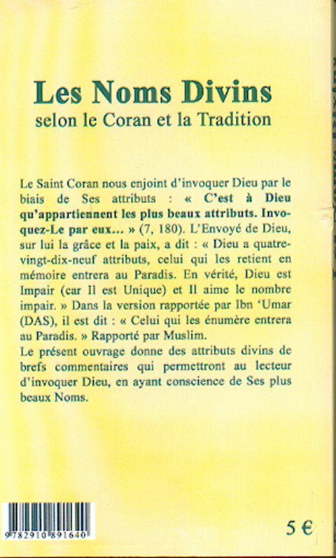 Le Saint Coran nous enjoint d'invoquer Dieu par le biais de Ses attributs: « C'est à Dieu qu'appartiennent les plus beaux attributs. Invoquez-Le par eux... » (7, 180). L'Envoyé de Dieu, sur lui la grâce et la paix, a dit: « Dieu a quatre vingt-dix-neuf attributs, celui qui les retient en mémoire entrera au Paradis. En vérité, Dieu est Impair (car Il est Unique) et Il aime le nombre impair. » Dans la version rapportée par Ibn 'Umar (DAS), il est dit: « Celui qui les énumère entrera au Paradis. » Rapporté par Muslim. Le présent ouvrage donne des attributs divins de brefs commentaires qui permettront au lecteur d'invoquer Dieu, en ayant conscience de Ses plus beaux Noms.