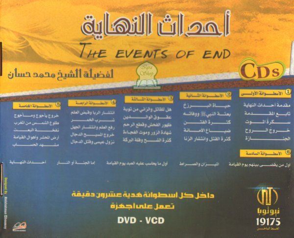 Encyclopédie en vidéos "Ahdath Annihaya" (pack de 6 DVD/VCD) de cours vidéo par Cheikh Mohamed Hassan pour tout savoir sur les Signes de la fin du monde (les petits signes et les grands signes).