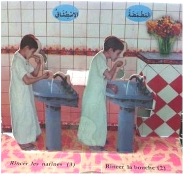 Livre pour enfant sur l'ablution avec 8 figurines en relief.
