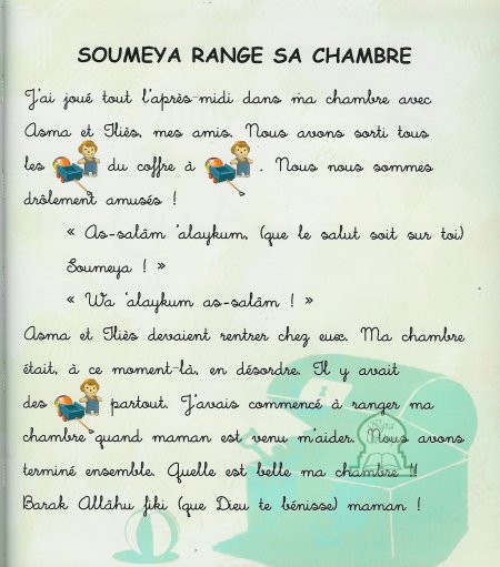 Ce livre est destiné aux enfants à partir de 4 ans. Il répondra aux attentes des parents désireux d'initier lerus enfants à l'alphabet et à la prononciation des mots arabes. Au fil des pages, vous découvrirez tout d'abord, les histoires de Soumeya parcourant les mots de son alphabet. Pour chacune des histoires, vous encouragerez votre enfant à nommer le dessin en arabe. Vous découvrirez également, le bon comportement de Soumeya et comment la présence de Dieu s'imprègne dan,s son quotidien. Enfin, nous vous porposons un jeu de domino pour tester les connaissances de votre enfant.
