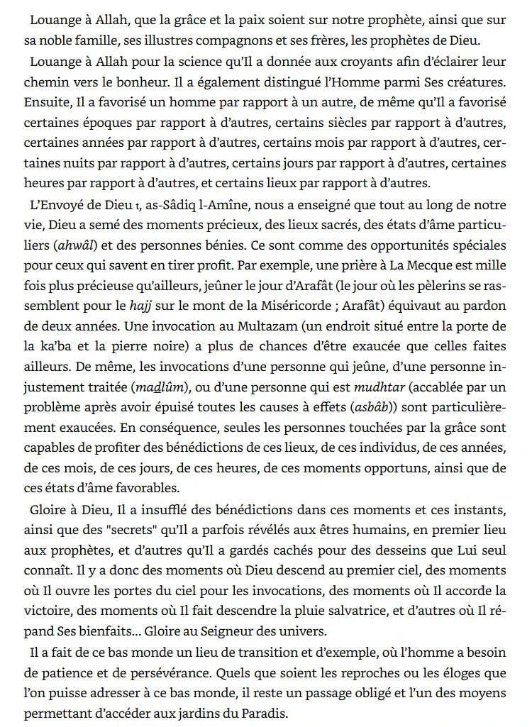 Le Prophète de l’Islam, Muhammad (paix et salut sur lui), nous a enseigné que Dieu a parsemé tout au long de notre existence des Hommes, des endroits et des moments particulièrement bénis. Ceux-ci sont comme des privilèges et bonus offerts à ceux qui savent les saisir.