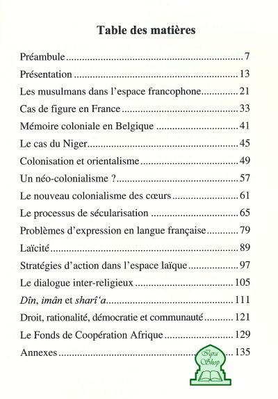 Accessoires divers - Alimentation Halal - Apprentissage anglais - Apprentissage arabe - Apprentissage français - Apprentissage langues - Art & Culture - Artisanat & décoration - Beauté, Soins naturels - Bien-être - Biographies - Calligraphie - Chants (Nachids) - Compagnons - Comprendre l'Islam - Contes & histoires - Cours & Conférences - Cuisine - Culture berbère - Da'wa (Prédication) - Dicos & encyclopédies - Divers - Dogme ('Aqîda) - Economie & finance - Education - Electronique - Enfants - Ethique - Exhortation - Femme - Fondements du droit - Hadiths - Histoire & civilisations - Histoires du Coran - Idées Cadeaux - Informatique - Initiation à l’Islam - Interprétation rêves - Invocations (dou'â) - Islam & laïcité - Islam & Occident - Islam & Sciences - Islam contemporain - Jeûne (Ramadan) - Jeunesse - Jurisprudence - Littérature & poésie - Ludoéducatif - Mariage & Couples - Monde arabe - Mystique & Soufisme - Paradis - Enfer - Mort - Pèlerinage & ‘Omra - Philosophie - Politique & Géopol. - Pratique religieuse - Prénoms - Prêt-à-porter Femmes - Prêt-à-porter Hommes - Prophètes - Religions du Livre - Revues & Guides - Roqya & protection - Saint Coran - Santé & Diététique - Sciences du Coran - Sciences du Hadith - Société & Traditions - Sounna du Prophète - Spiritualité - Tafsîr (Exégèse) - Tajwîd (Règles) - Tourisme - Vie du Prophète saw - Zakat & aumône
