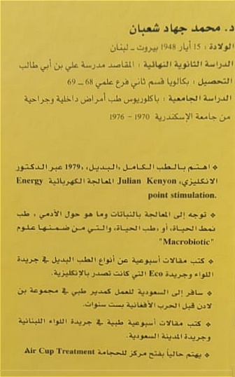 ويؤكد المؤلف في هذا الكتاب أن ما يأكله الإنسان يؤثر سلباً أو إيجاباً على صحته، ومن هنا يجب توجيه المريض إلى الأغذية التي تساعد على شفاء أمراضه ومنعه من تناول المأكولات التي تعاكس مفعول الدواء الشفائي الذي يتناوله لعلاج أمراضه.