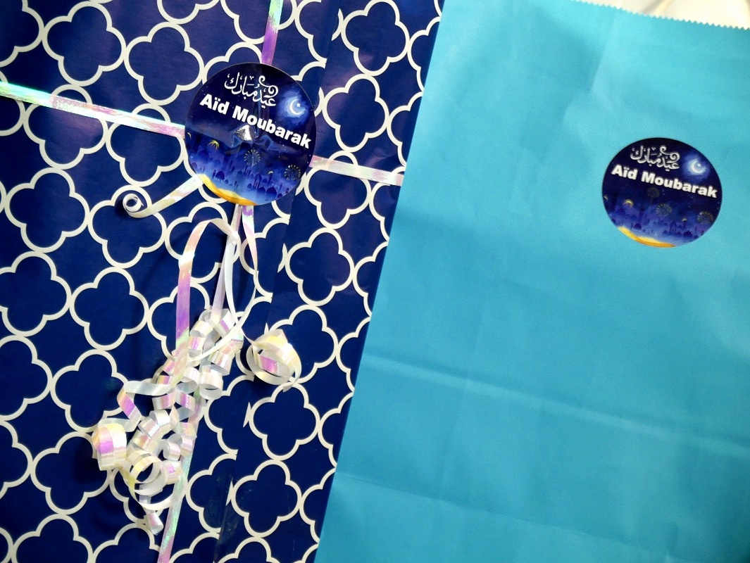 Pack spécial Aïd Moubarak Boite cadeau + Mélange de 5 sachets de bonbons "Eid Mubarak" et Cartes de voeux Eid Mubarak - REF. 32703 (10.00 €) - En Promotion à 8.90 €