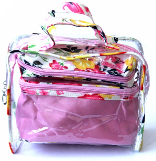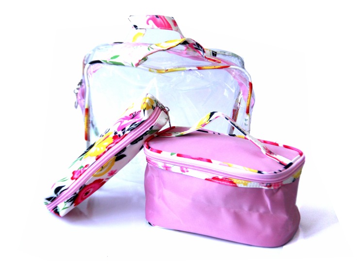 Lot de de trois Trousses de maquillage pour ranger ses produits de beautes et cosmetiques de couleur rose claire avec motifs fleurs
