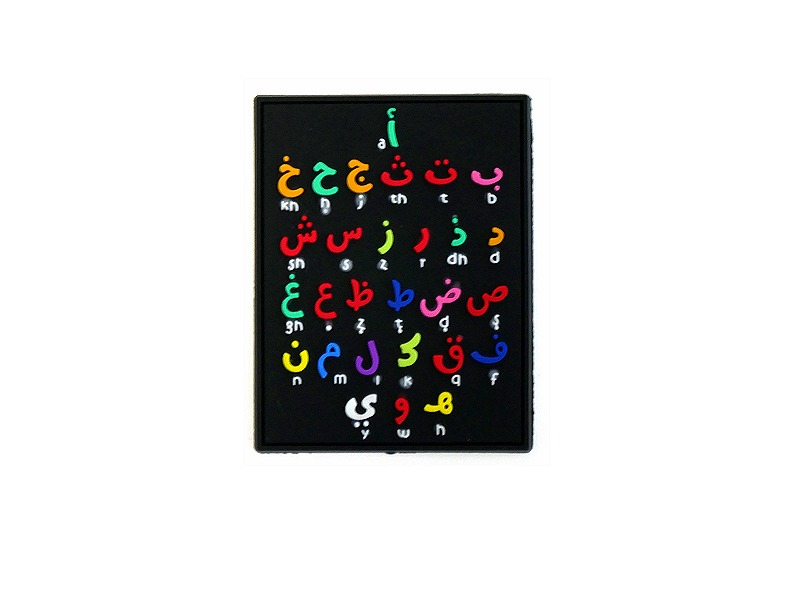 Magnet avec l'alphabet arabe : les 28 lettres arabes et leur prononciation phonétique.
