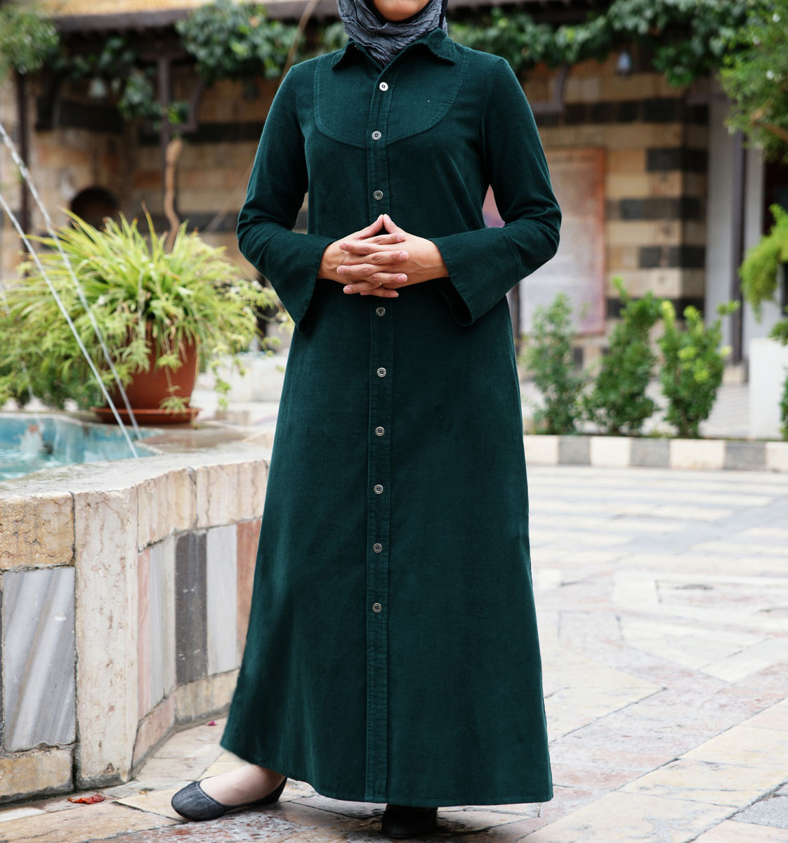This simple elegant jilbab has subtle stylish details that make all the difference. Now available in winter-warm corduroy, look great and feel modest without the effort!