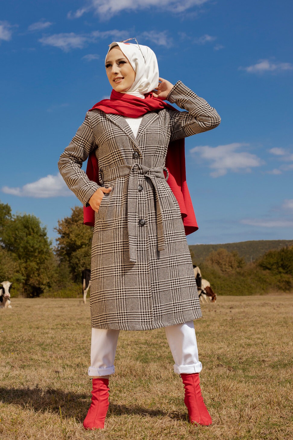 Veste avec ceinture (Vetement Hijab - Boutique en ligne France) - Couleur brique - REF. 35396 (19.90 €)