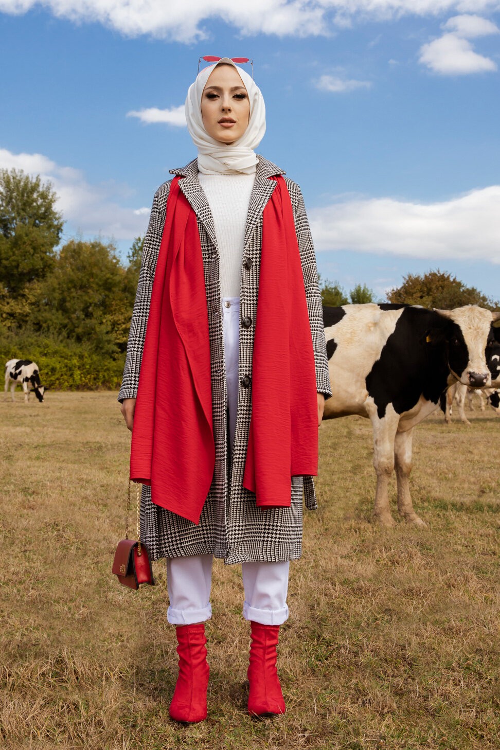 Veste longue pour femme - style chemise (Vetement Modest Fashion) - Couleur rouge grenadine - REF. 32906 (29.90 €)