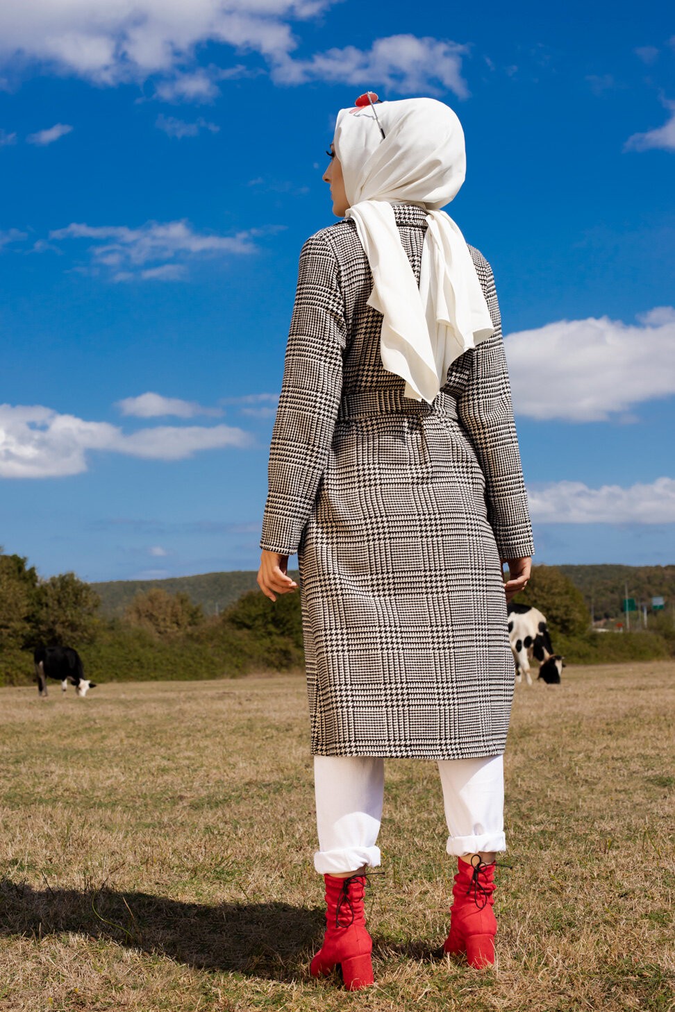 Robe chemise longue boutonnée à carreaux - Saison Automne-Hiver (Mode musulmane) - Couleur anthracite et vert - REF. 35647 (24.90 €)