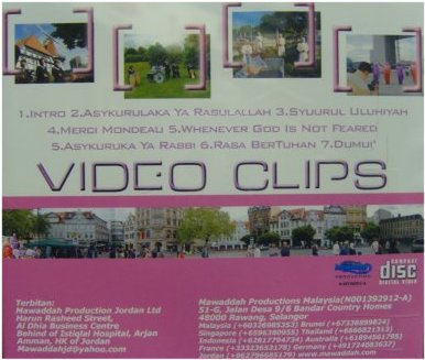 VCD/DVD de Vidéo clips de chants en langue arabe et anglaise du groupe Mawaddah de Malaisie sur différents thèmes. Les chants sont à écouter par des sœurs car chantés par des sœurs. Le deuxième VCD/DVD (Mawaddah Académie, Art et Culture) contient des activités interprétés par des enfants en langue arabe.