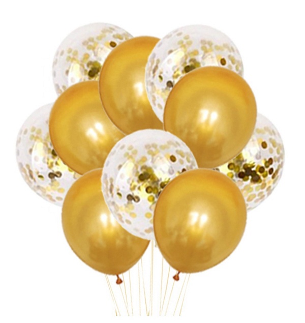 • 5 ballons avec grandes paillettes dorées à l'intérieur