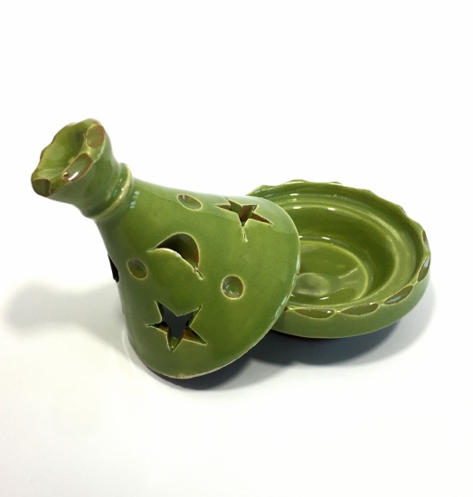 Mini tajine photophore decoratif marocain en poterie de couleur vert clair