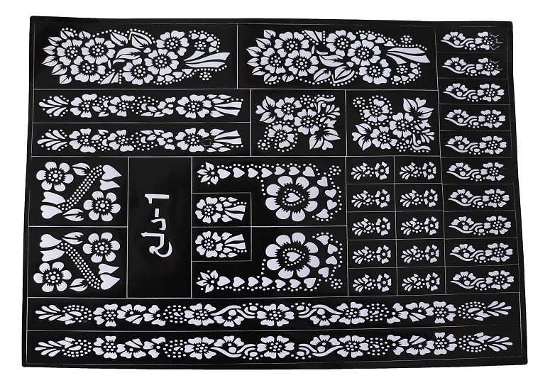Grande plaque de motifs de tatouages au henné, idéal pour parfaire vos tatouages au henné pour vos mariages et fêtes.