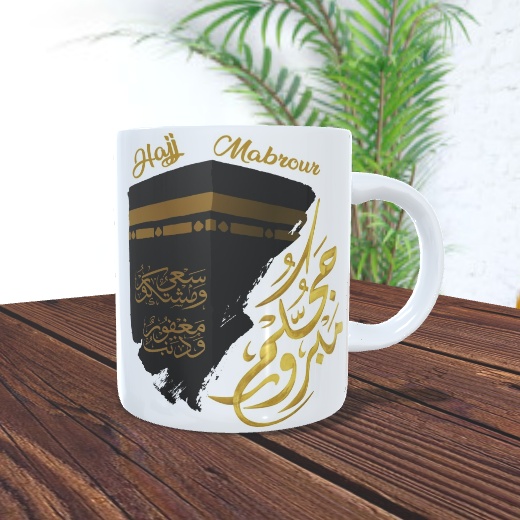 Mug "Hajj Mabrour" à offrir au pèlerin 2025 (celui qui revient du Hadj à La Mecque) avec invocation - حج مبرور وسعي مشكور وذنب مغفور - REF. 40418 (5.90 €)