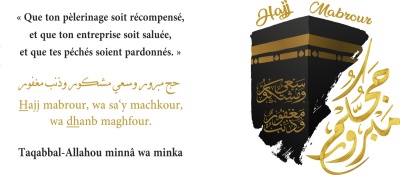 "Que ton pèlerinage soit récompensé, et que ton entreprise soit saluée, et que tes péchés soient pardonnés."