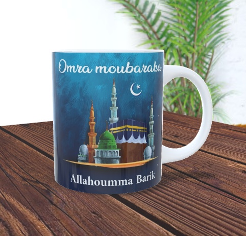 Mug contenant des invocations (du'a) en arabe et français pour ceux qui reviennent de la Oumra... Il n'y a pas une invocation précise à dire dans la sunna mais il est toujours recommandé de faire des invocations...