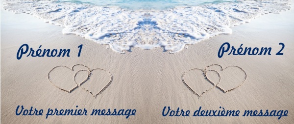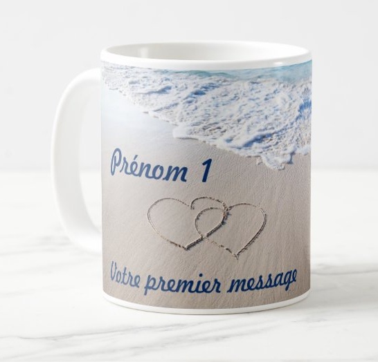 Mug Personnalisé avec prénom(s) / message(s) de votre choix (Plage et deux coeurs dessinés sur le sable) Deco & Cadeau