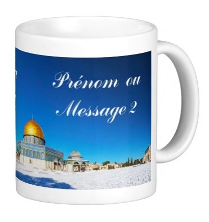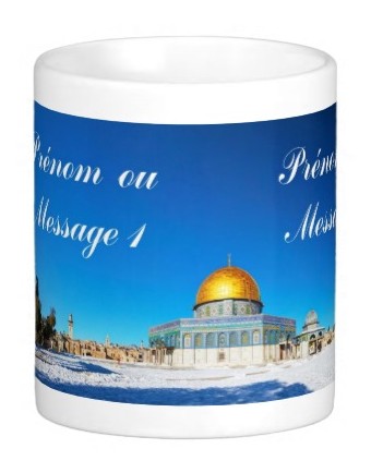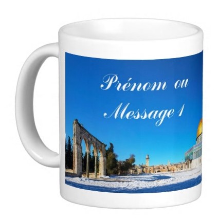 Mug personnalisable avec une magnifique photo en longueur de l'Esplanade des mosquées (Palestine) recouverte de neige.