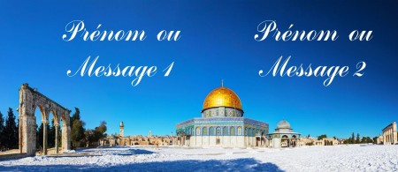 On y retrouve au centre "Le dôme du Rocher" ou la coupole du Rocher (en arabe : قبة الصخرة, Qubbat As-Sakhra) à « Al Qods » (Jérusalem), sur le « Haram al-Charif » (Esplanade des mosquées), troisième lieu saint musulman après La Mecque et Médine, où s'élève également la mosquée al-Aqsa.