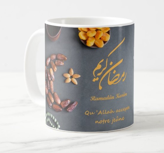 Découvrez ici une sélection de tasses uniques et originales pour les occasions du mois sacré du jeûne et de la fête de l'Aïd... Les tasses spéciales Ramadan vont vous accompagner durant vos repas du mois de Ramadan et principalement lors de la rupture du jeûne avec les invocations à lire au moment de rompre son jeûne qui sont inscrites sur les tasses...