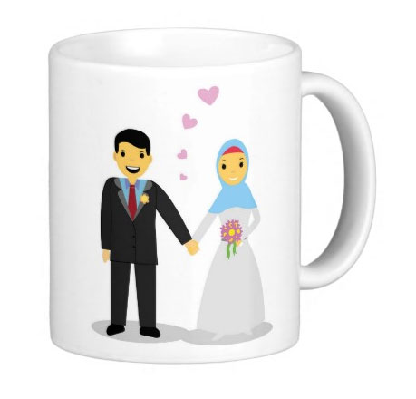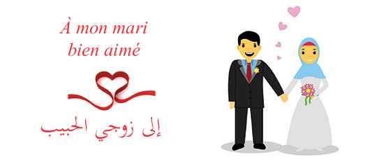 Mug "À mon mari bien aimé" (إلى زوجي الحبيب) avec l'illustration d'un couple musulman...