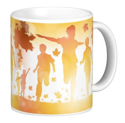Mug avec une illustration d'enfants courant et s’amusant dans la joie et le bonheur.