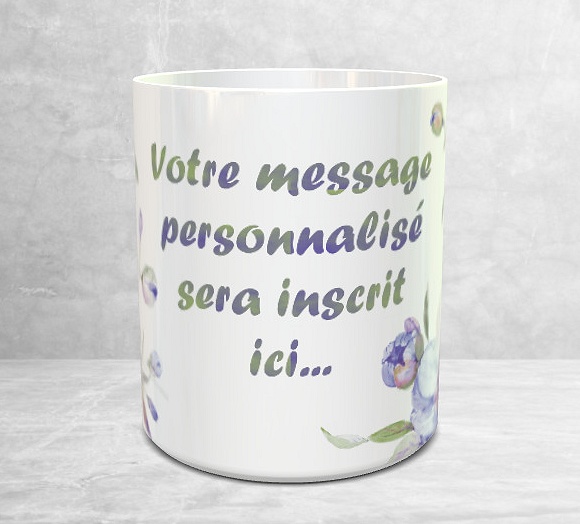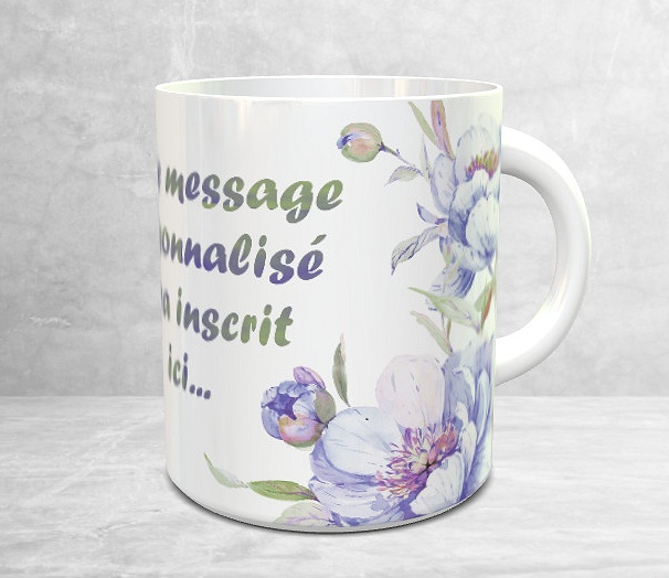 Tasse personnalisable avec plusieurs messages ou prénoms (Décoration florale) - REF. 36324 (9.90 €)