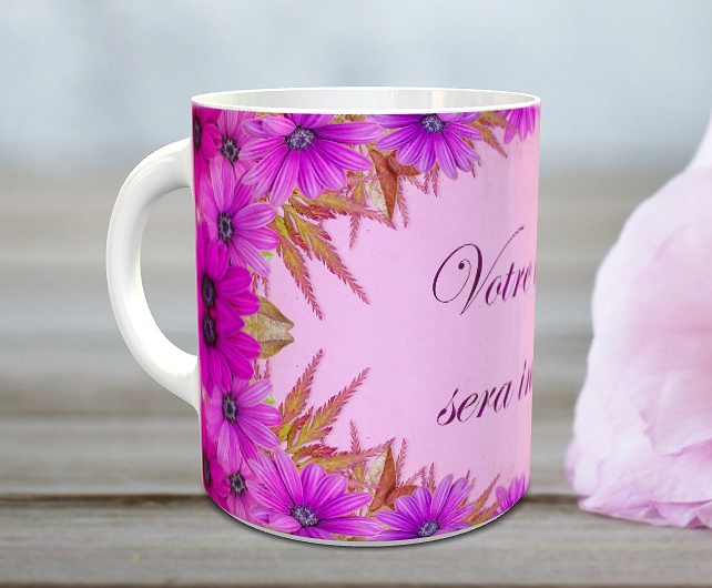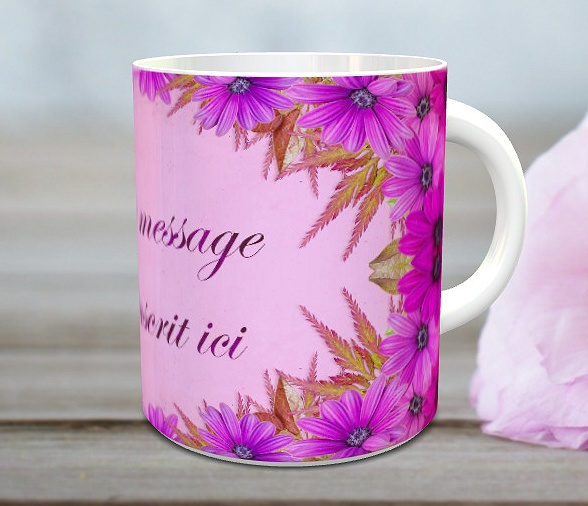 Mug fleuri rose pour offrir - Tasse cadeau avec messages personnalisés - REF. 36892 (9.90 €)