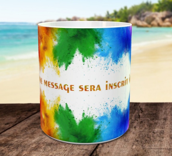 Mug multicouleur - Tasse avec un message personnalisé (explosion et poudre multi-couleurs) Deco & Cadeau