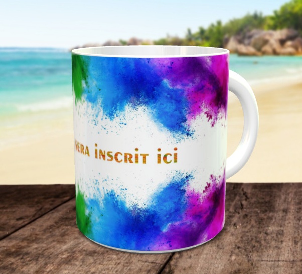 Mug multicouleur - Tasse avec un message personnalise (explosion et poudre multi-couleurs)
