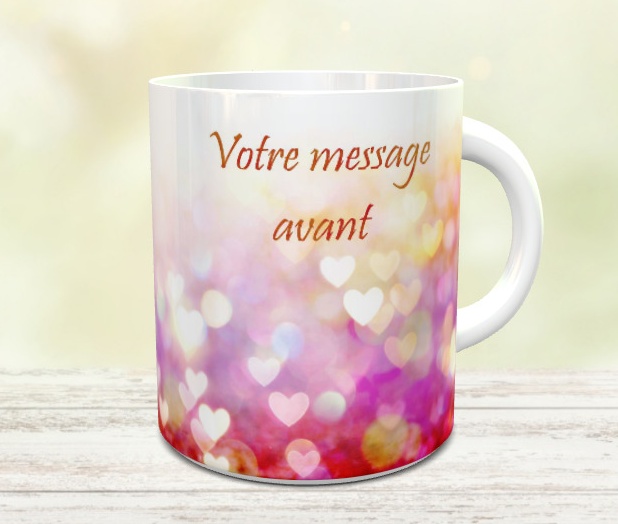 Recevez ce mug original personnalisé à votre guise avec la possibilité d'y inscrire un ou plusieurs messages (ou prénoms)... Nous nous occuperons de faire une belle présentation.