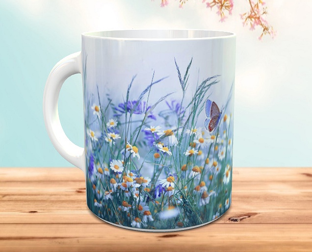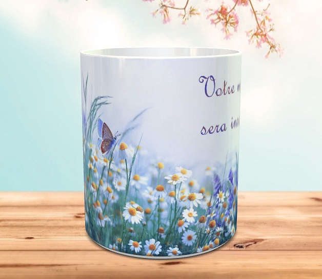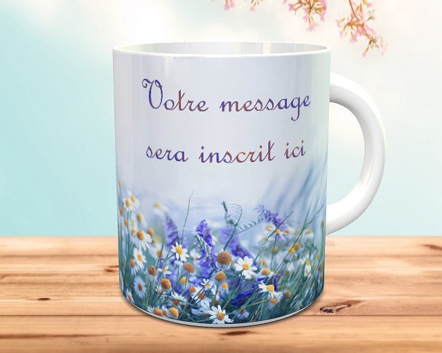 Mug papillon libre dans un champs de marguerites - Tasse cadeau avec un message personnalisé Deco & Cadeau