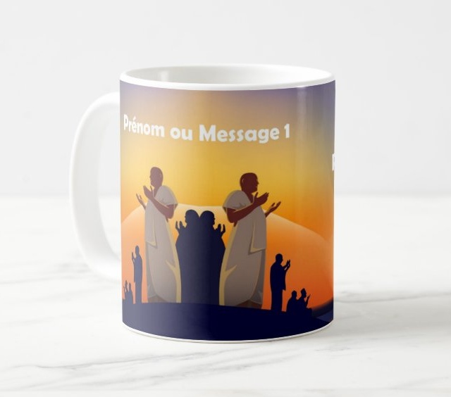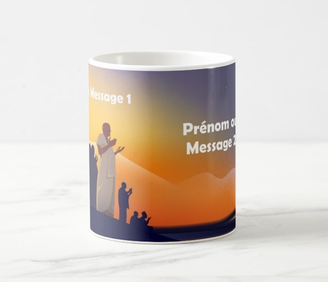 Mug personnalise a offrir au pelerin (celui qui revient du Hajj : Pelerinage a La Mecque) avec message ou prenom -